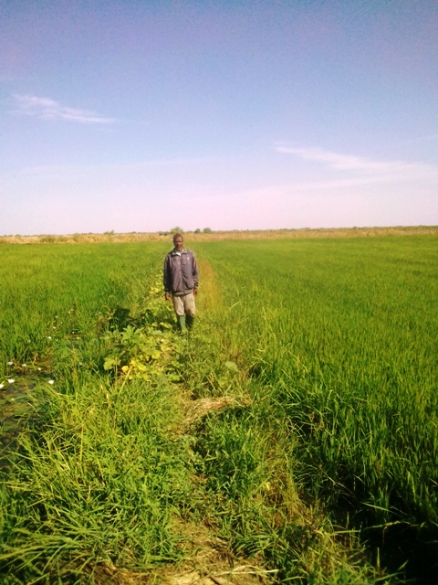 « Tu vois, je suis seul. Aujourd’hui, les enfants ne peuvent pas m’aider parce qu’ils sont à l’école. Chaque jour, il faut se lever à quatre heures du matin pour être là avant les mange-mil (premier danger pour les parcelles de riz à un mois de sa maturation). Pour me faire aider, j’ai été cherché un travailleur étranger mais ce qu’il me demande est au-dessus de mes moyens. »